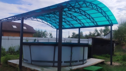 Навес арочный из голубого поликарбоната для зоны с бассейном Арт-670