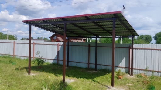 Односкатный навес с крышей из профнастила на дачном участке Арт-727